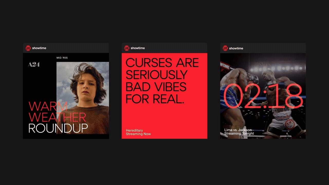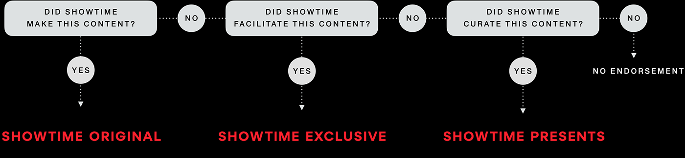 It all began with lengthy group discussions with key brand stakeholders about the true meaning of Showtime. About their legacy as a challenger brand and their devotion to curation and pushing boundaries. Our core objectives from the outset were straight forward: