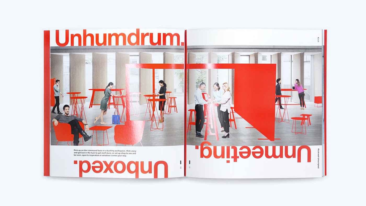 I was given free rein to really get playful with the language. I created a lexicon of “Un-words” to describe all of the things that Rockwell Unscripted was not. I then wove these words into headlines, body copy, and free form poetry(!) that filled two page spreads throughout the book.