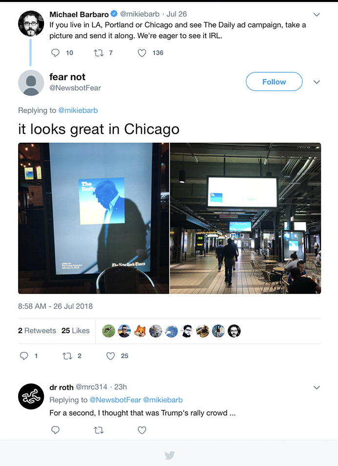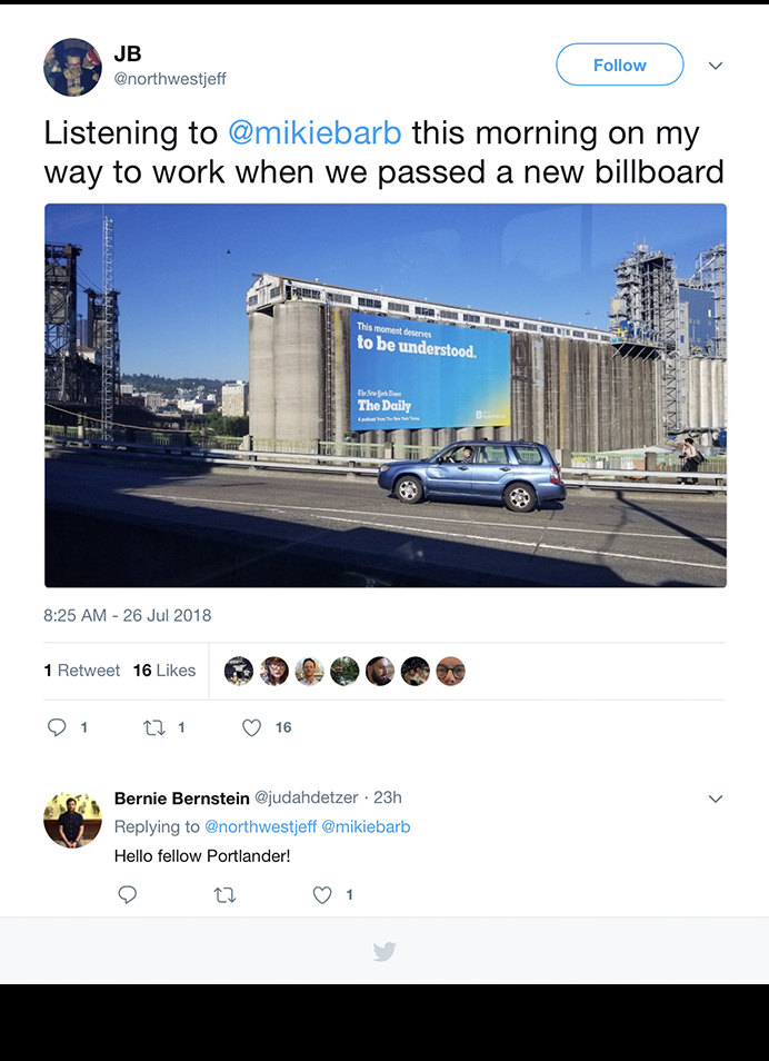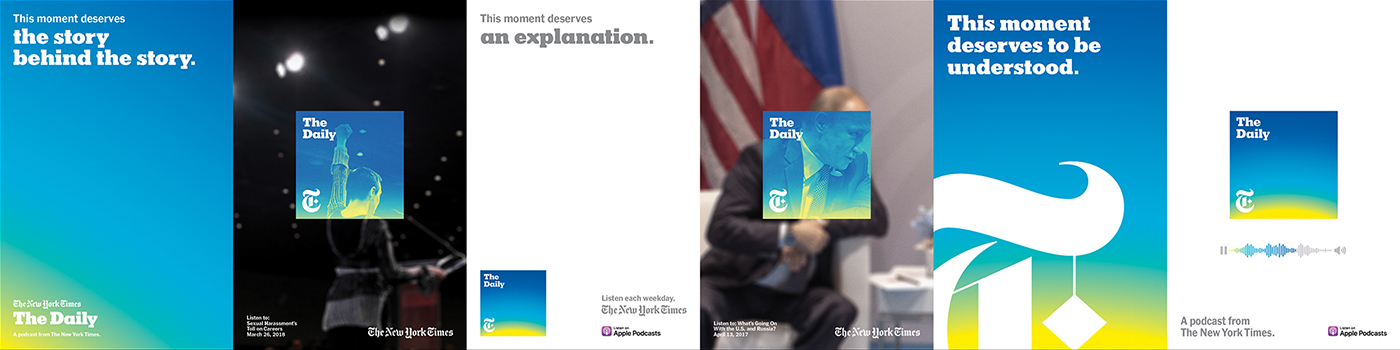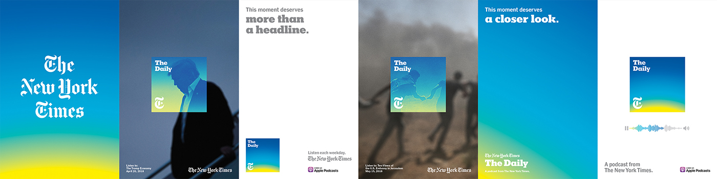 This past summer I was thrilled to be invited back to Gretel to work on the flagship campaign for the New York Times’ podcast, “The Daily”. Hosted by Michael Barbaro, “The Daily” has five million monthly unique listeners, and it became the most-downloaded new show in 2017 on Apple Podcasts, airing on more than 30 radio stations across the country. Sam Dolnick, assistant managing editor, now calls it “the new front page.”