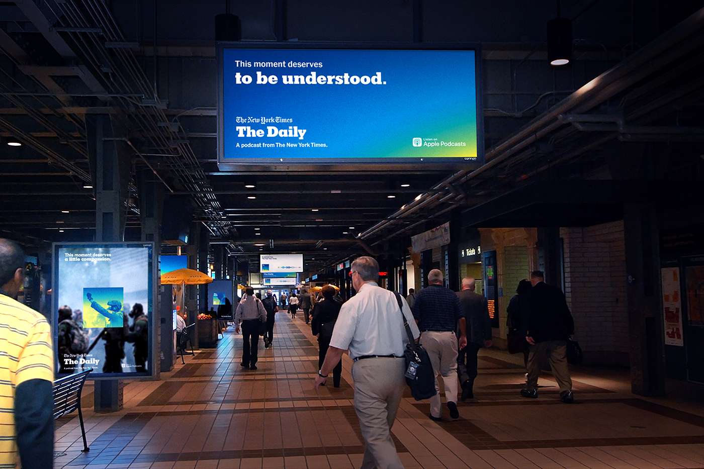 The Times commissioned Gretel to help grow the audience and celebrate the uniqueness of the show to untapped listeners. We needed to articulate the importance and relevance of the show in a succinct, memorable and non-partisan way. We developed a verbal and visual language, which threads the immediacy of the medium with the mission of the Times. The campaign ran nationally, with executions that spanned OOH, TV, radio, print and digital – all built around a single line: “This moment deserves to be understood.”